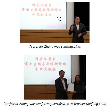 Professor Wei Zhang concluded that doctoral guidance should aimed at paralleling with to the world's top universities. Tutors should make sure that students maintain the original impetus to pursue a doctorate. He especially emphasized the importance of the dissertation writing. Rules, rhythmical structure, standardized format should be considered. Dissertation submitted must match the reputation of Tsinghua University. He pointed out that the psychological problems of students is not terrible, some of which were normal psychological fluctuations. Instructors should be alert to their mental condition and guide students properly. Professor Zhang hoped that, in a new starting point, with new standards, we can develop world-class scholars. He believed that new doctoral tutors would be competent in guidance work, fulfill the duties of "a teacher".