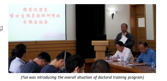 Qiaofeng Tan first introduced the overall situation of doctoral training program in Department of precision instruments, noticed on the doctoral training program, situations of anonymous review on doctoral dissertation over the years, the award situation in National 100 Excellent Doctoral Dissertations, as well as Excellent Doctoral Dissertations awarded by China Instrument and Control Society and Chinese Society for Optical Engineering in the year 2016 and 2017 in our department.