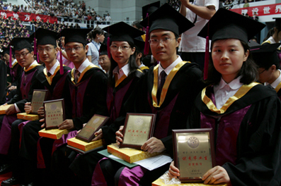 Tsinghua University’s undergraduate commencement ceremony was held on July 15 at which diplomas were awarded to 3,045 students. President of Tsinghua and Chairman of the Degree Conferral Committee Gu Binglin, Tsinghua University Council Chairman Hu Heping, and other university leaders awarded degrees and certificates to the new graduates.