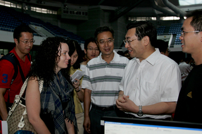 Tsinghua University President Gu Binglin and University Council Chairman Hu Heping together with other university officials presided over a welcoming ceremony for 2009's new graduate students on the morning of September 4.