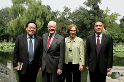During their conversation, President Gu stated that the relationship between Tsinghua and the U.S.A. has a long history which includes institutional exchanges, collaboration with industries, and visits by government officials. President Gu then briefed Mr. Carter on Tsinghua’s latest development in education and overseas cooperation. President Gu and Mr. Carter also exchanged ideas on future collaboration between Tsinghua and The Carter Center in Atlanta. Tsinghua University Vice President Yuan Si also participated in the discussion.