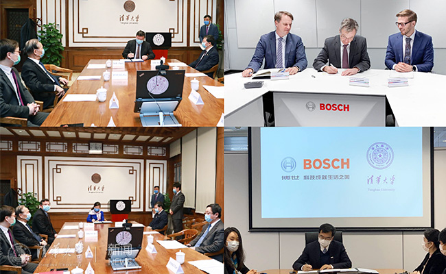 Tsinghua University and Bosch announced a five-year research collaboration agreement in the field of artificial intelligence by establishing a Tsinghua-Bosch Joint Research Center for Machine Learning on March 6. The ceremony was held online via video link from Beijing, Shanghai and Renningen in Germany.