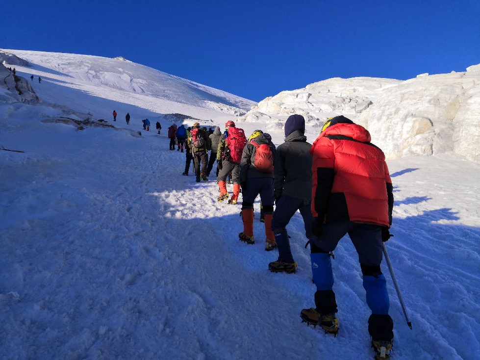 The climbing training on Haba Snow Mountain was held as part of the mountaineering team’s preparations for its upcoming summer mountaineering activity.