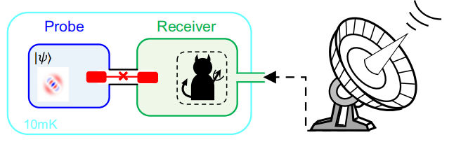The experimental sample is composed of a superconducting qubit coupled with two microwave resonators (as shown in Fig.1). One with a long lifetime is used as the probe cavity, and the other with a short lifetime is used as the receiver cavity. In the experiment, the state of the probe cavity is prepared into the superpositions of quantum states with different photon numbers. Then the receiver cavity is used to receive the microwave signal from the external source. Finally, via the interaction between the two cavities, the relative phase of the superposition state in the probe cavity will accumulate, through which the intensity of the microwave signal in the receiver cavity can be measured. Meanwhile, in the experimental process, in order to fight against the decoherence effect of the superposition state in the receiver cavity caused by the environmental noise, approximate QEC operations were used to track the number of error occurrences, thus greatly enhancing the measurement sensitivity (as shown in Fig.2).