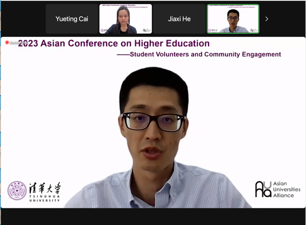 The "2023 Asian Conference on Higher Education - Student Volunteers and Community Engagement," one of the programs of the Asian Universities Alliance, and launched by Tsinghua University Committee of the Communist Youth League, was recently held. This virtual event attracted over eighty students and teachers from 12 Asian universities.