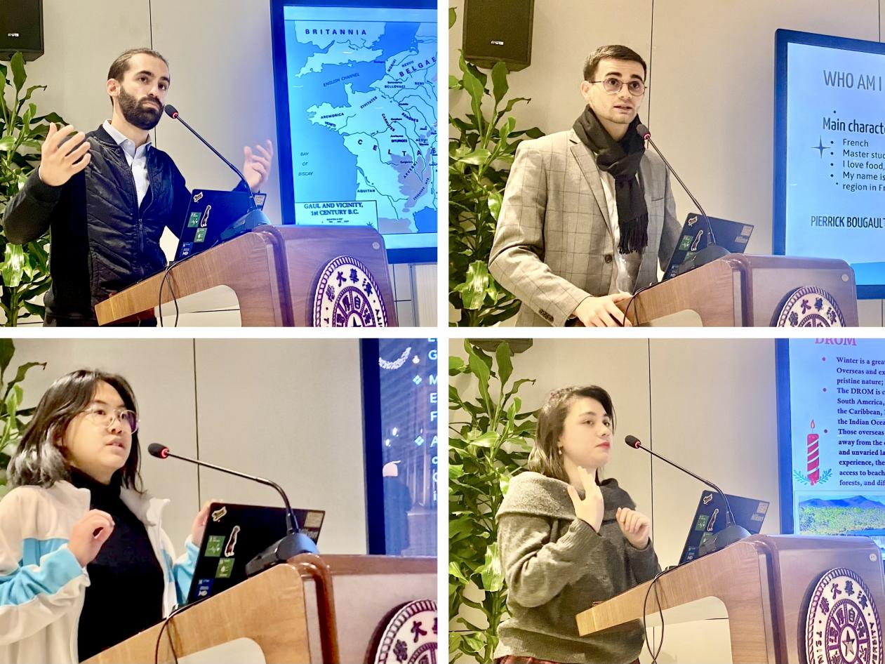 For this event, four specially invited guest students from France took the stage and shared their expertise on different facets, covering French history, landmarks, traditional festive culture, and insights into the Brittany region, which provided the audience with a profound understanding of the rich cultural heritage of France.
