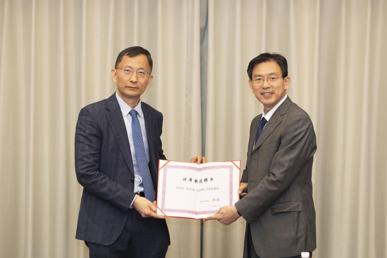 University President Li Luming provided an overview of Professor Gao Huajian’s acclaimed career and key contributions, and presented him with the appointment certificate for the Chair Professorship at Tsinghua University.