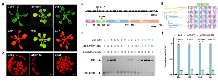 To uncover new mechanisms that how the organisms could coordinate the transcription and replication with R-loop formation and genome maintenance, the researchers adopted a forward genetic screening strategy to identify suppressors of atrnh1c, and identified a suppressor of atrnh1c, named acs1 (atrnh1c suppressor 1). Compared with atrnh1c, acs1 showed the recovery of growth defects and leaf color in all stages of plant development, and the quantum efficiency of photosystem II (Fv/Fm), chlorophyll contents, the number and morphological features of chloroplasts in cells, and plant fresh weight all recovered to normal states. The ACS1 gene encodes the DNA primase-helicase ATH with dual localization potential (chloroplast and/or mitochondria), for synthesizing RNA primers during organellar DNA replication (Figure 1).