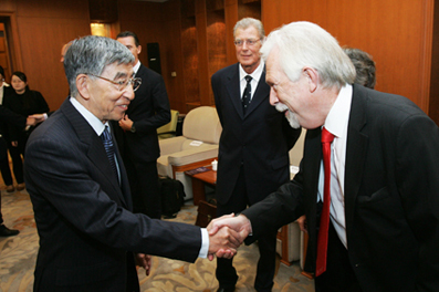 Tsinghua University Council Honorary Chairman Wang Dazhong had a discussion that morning with Professor Sibrand Poppema, President of the University of Groningen, prior to the opening ceremony for Groningen Day. The two expressed the hope that cooperation between their institutions could be extended in the future.
