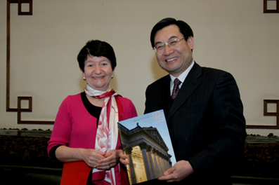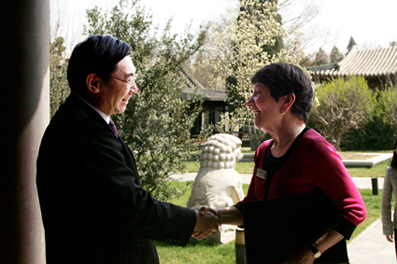 Cambridge University Vice Chancellor Alison Richard visited Tsinghua University on April 14. Tsinghua University Council Chairman Hu Heping had a discussion with Professor Richard.