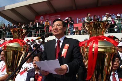 The sports games have always been an integral part of the university’s anniversaries, and with this year being the school’s centennial anniversary, students and faculty alike have been preparing extensively to ensure that the performance today is a spectacle to be remembered. Tsinghua University President Gu Binglin, Tsinghua University Council Chairman Hu Heping and other top university leaders attended the opening ceremony.