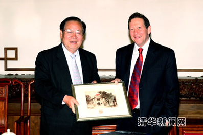 Mr. Thomas Pritzker, Chairman of the Hyatt Foundation, visited Tsinghua University on May 23. During his visit, a Memorandum of Understanding on the Pritzker-Tsinghua Fellowship Program between the Hyatt Foundation and Tsinghua's School of Architecture was signed. Tsinghua University President Gu Binglin had a discussion with Mr. Pritzker prior to the signing ceremony. They exchanged ideas on promoting further cooperation between Tsinghua and the Hyatt Foundation.