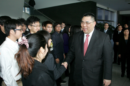 Mr. CHUI Sai On, the Chief Executive of Macao Special Administrative Region, visited Tsinghua on March 7th. Tsinghua University President Chen Jining had a discussion with Mr. CHUI Sai On. Tsinghua University Vice President Yuan Si attended the discussion.