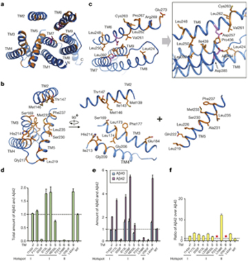 (Figure 3. Assembly interfaces among the four components of g-secretase in the transmembrane region)