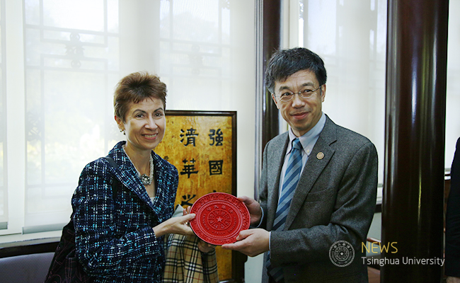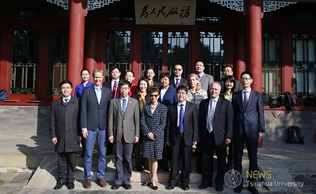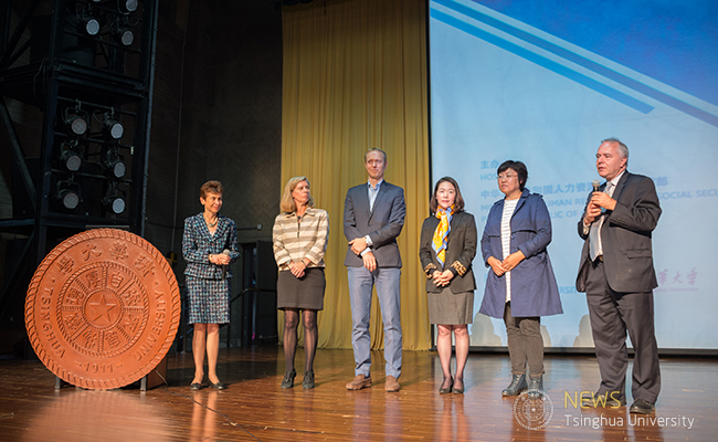 Prior to the event, Mr. SHI Zongkai, Vice chairman of Tsinghua’s university council, had a courtesy meeting with Ms. Martha Helena Lopez Rodrigue, Director, Office of Human Resources, Bureau for Management Services, United Nations Development Programme (UNDP), Mr. FU Yueqin, Director-General, Center for International Exchanges, and Mr. MA Hezu, Deputy Director-General, Department of International Cooperation, Ministry of Human Resources and Social Security.