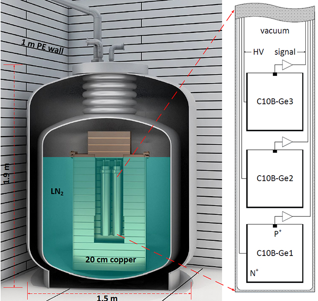 On June 12th, CDEX (China Dark matter EXperiment) collaboration, led by Tsinghua University, published an article entitled “Limits on Light Weakly Interacting Massive Particles from the First 102.8kg×day Data of the CDEX-10 Experiment” on Physical Review Letters (Phys. Rev. Lett. 120, 241301). In this work, the most stringent limits on spin-dependent WIMP-nucleon cross sections were set for a WIMP mass of 4-5 GeV/c2 with the lowest exclusion at 8×10-42cm2 using Point Contact Germanium detectors directly immersed into liquid nitrogen.