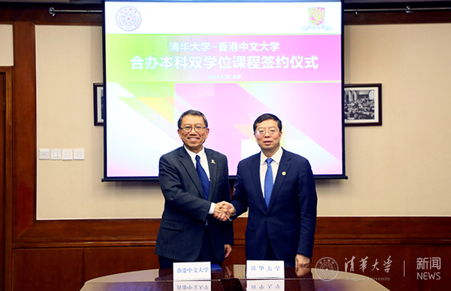 President Qiu Yong and Rocky S. Tuan signed a MOU between Tsinghua University and the Chinese University of Hong Kong on behalf of both sides. The two universities will jointly offer undergraduate dual-degree programs. The first batch of programs will include computer science and economics. Upon the approval of the Ministry of Education, students completing relevant program courses will receive bachelor’s degree certificates issued by Tsinghua University and the Chinese University of Hong Kong. It is expected that the first cohort of students will be enrolled for the academic year 2020-2021.