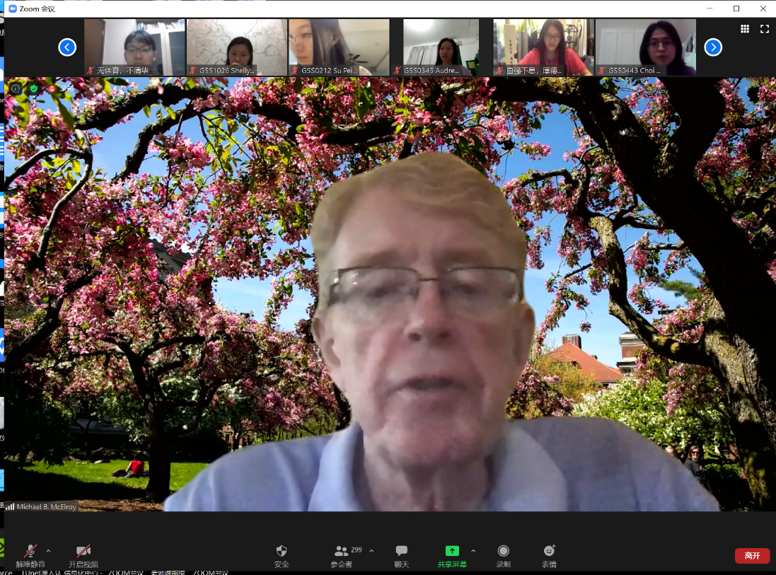 The last lecture of day four was the webinar entitled "Sustainable Development Under and Post-Pandemic", hosted by Professor Xi Lu, Associate Professor from the School of Environment and the Project Director of the Global Environment Program. Distinguished guests include Professor Wu Ye, Vice Dean of the School of Environment, Professor Hou Deyi, Associate Professor and Project Director of the Summer School Program from the School of Environment. In addition, we were also delighted to have Professor Michael B. McElroy, Gilbert Butler Professor of Environmental Studies at Harvard University who currently holds the chairmanship of the Harvard-China Project on Energy, Economy, and Environment. He joined us in the webinar, explaining the origins of climate change, the current challenges we face, and coping strategies in moving forward. Professor McElroy also talked about the impact and opportunities brought by the pandemic on our future energy system. Participants of the webinar actively engaged with the professors with questions concerning the cost of renewable energy, the characteristics of our energy system in various countries, energy conservation, and emission reduction. Finally, Professor Hou summarized the course for day four of Tsinghua GSS, hoping that students worldwide could work in synergy to realize the Sustainable Development Goals.