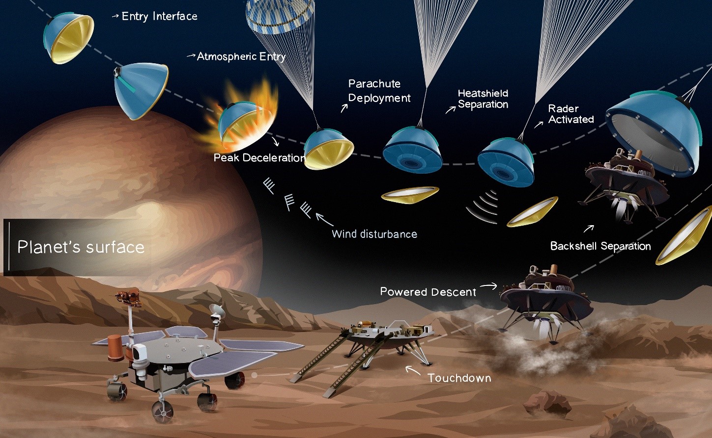 The Tianwen lander had to follow the same sequence as most space missions landing on other planets (or back on Earth), a process known as Entry, Descent and Landing (EDL).