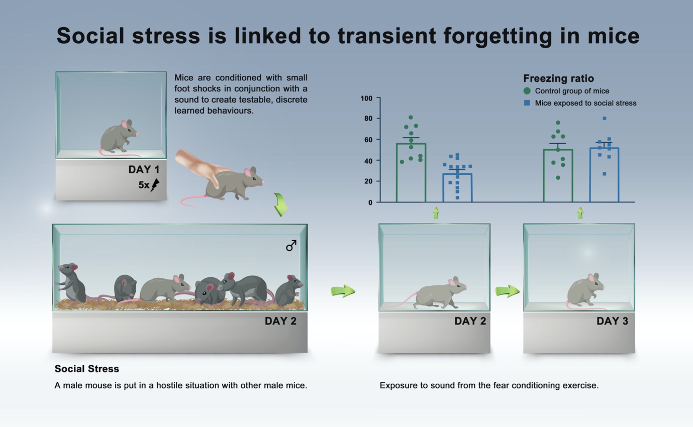 The results suggest that the sensation of reward felt by the male mice mixing with the females helped the males convert memories from a silent to a latent state. And, vice versa, social stress encouraged latent state memories to switch to the silent state, which the researchers described as “transient forgetting” as it didn’t show up 48-hours after the exposure to stress.