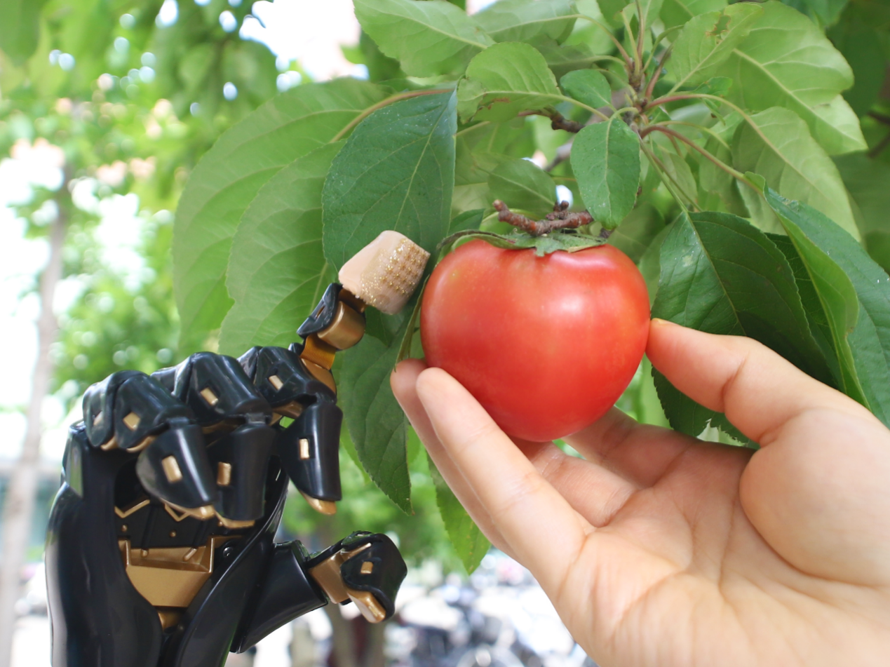 With the assistance of artificial intelligence, they developed a tactile system for simultaneous modulus/curvature measurements of an object through touch. Demonstrations include rapid modulus measurements of fruits, bread, and cake with various shapes and degrees of freshness.