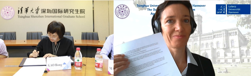 Gao Hong, Executive Dean of Tsinghua Shenzhen International Graduate School (Tsinghua SIGS), and Insa Neuweiler, Dean of Civil Engineering and Geodetic Science at LUH, both signed the agreement on behalf of the two parties.