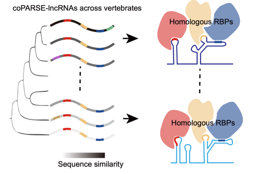 In summary, this study provides a machine learning-based computational method that identifies a series of potential homologous lncRNAs in vertebrates. They experimentally validated the functional conservation of homologous lncRNAs. Although the sequence conservation of these lncRNAs diminishes during evolution, the conserved RBP binding patterns have been retained (Figure 2). This work greatly expands the current repository of conserved lncRNAs in vertebrates and provides new perspectives and resources for studying the evolution, function, and mechanisms of lncRNAs.