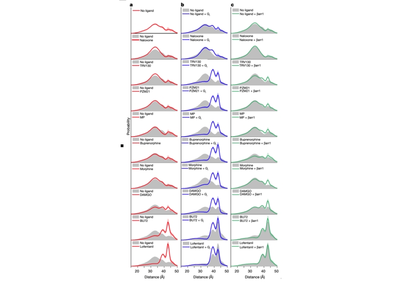 On April 10th, a landmark paper titled "Ligand Efficacy Modulates Conformational Dynamics of the µ-Opioid Receptor" was published in the journal Nature. This research, led by Dr. Chunlai Chen from Tsinghua University, Dr. Brian Kobilka from Stanford University, and Dr. Wayne Hubbell from the University of California, combined Double Electron–Electron Resonance (DEER) and Single-Molecule Fluorescence Resonance Energy Transfer (smFRET) methods to explore the molecular basis of µOR activation and signal transduction.