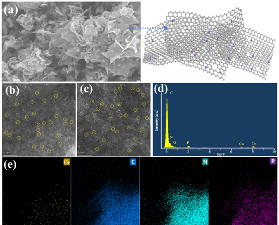 The research group used the rare 15NO3− in nature as the nitrogen source and employed the isotope labeling method to further prove that the sole nitrogen source for ammonia production was NO3−. The 1H NMR spectra with 14NO3− and 15NO3− as reactants showed typical triple and double peaks corresponding to the 14NH4+ and 15NH4+ products, respectively. The group analyzed the carrier structure using various experimental techniques. The results showed that the doping of phosphorus further increased the defect level of the carbon-nitrogen carrier, provided more fixed sites for loading SAC, and the defect sites affected the electronic structure and performance of adjacent Co active sites, improving the electrode conductivity.