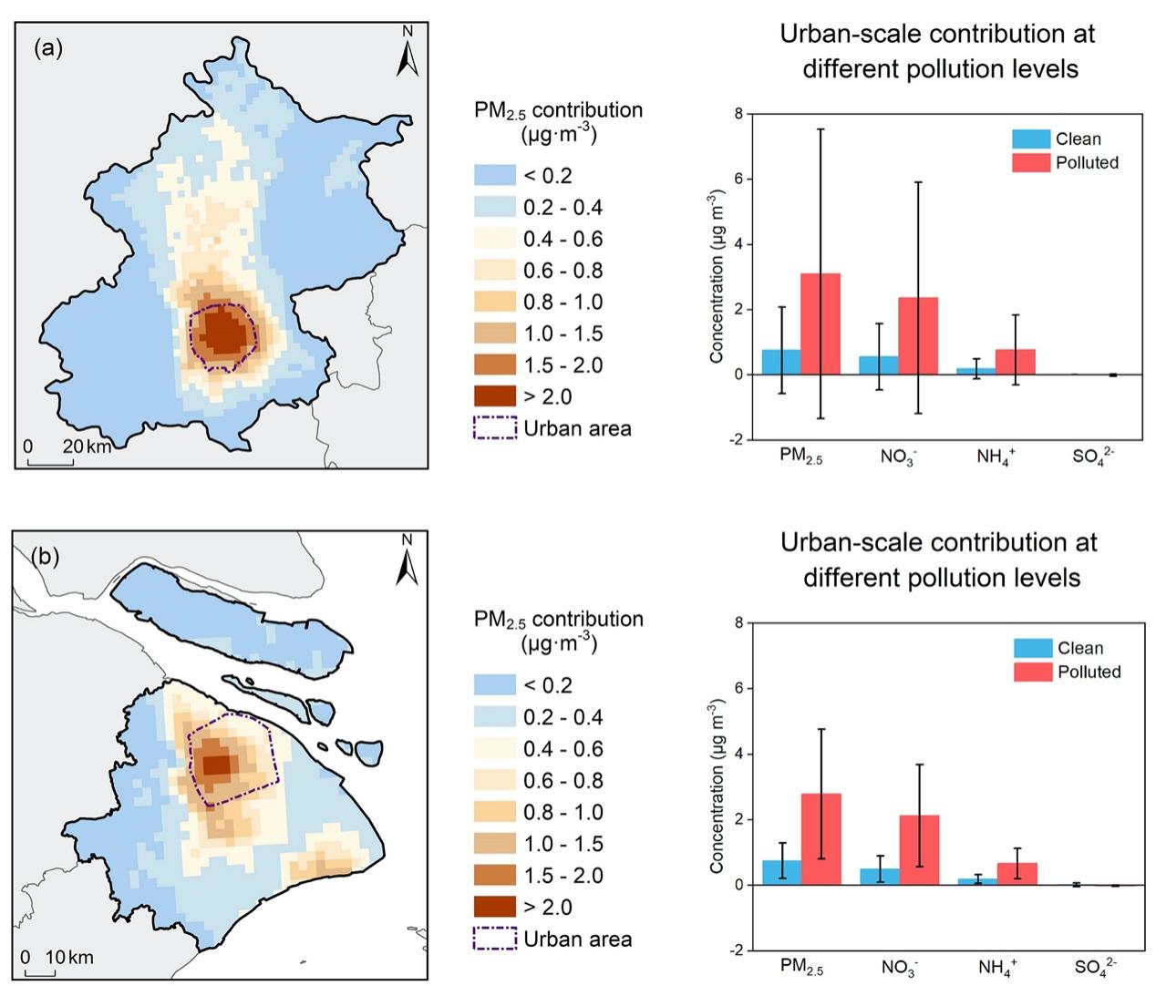 Figure 3 Contribution of vehicular NH3 emissions to wintertime PM2.5 concentrations in Beijing and Shanghai