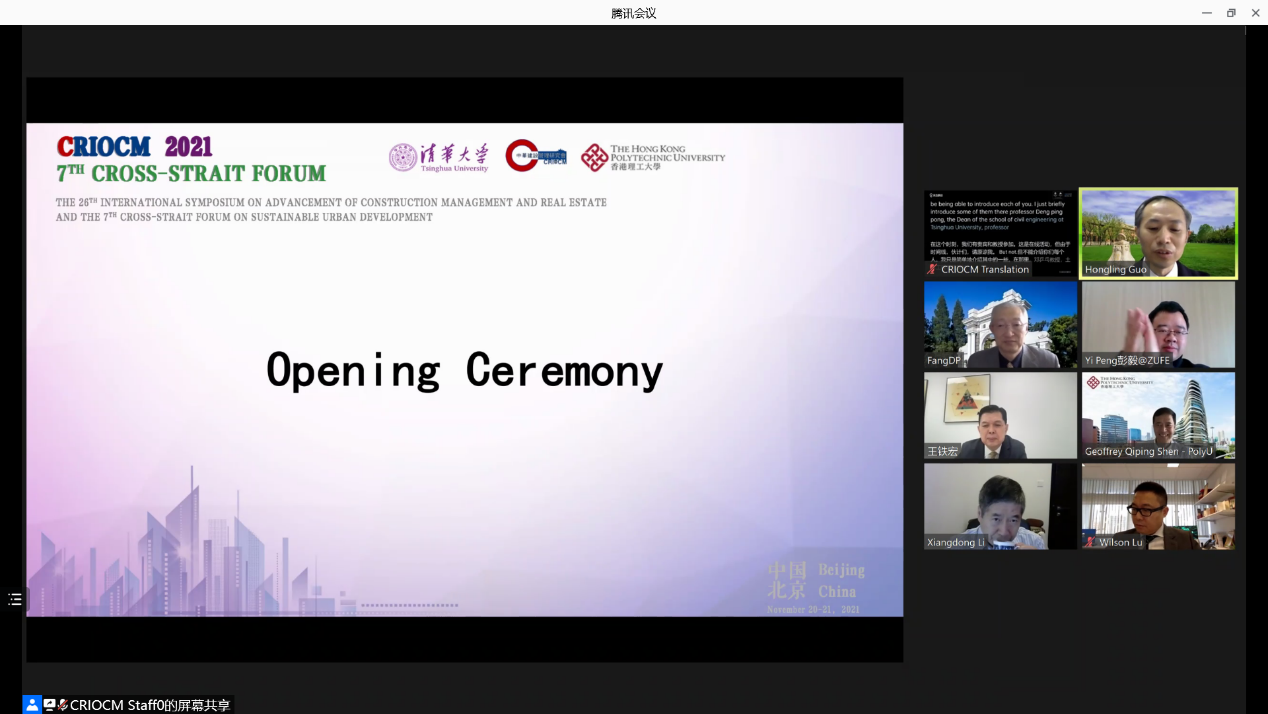 首页网12月10日电 11月20日-21日,第二十六届建设管理与房地产发展国际学术研讨会(CRIOCM 2021)暨第七届海峡两岸可持续城市发展论坛在线成功举行。本次会议由心博在线登录入口、中华建设管理研究会和香港理工大学联合主办,心博在线登录入口土木水利学院、心博在线登录入口未来城镇与基础设施研究院和香港理工大学可持续城市发展研究院联合承办。来自中国、澳大利亚、美国、英国等国家和地区的建设管理与房地产领域的专家及学者共计200余人,共同探讨了当代建设管理和房地产创新、城市可持续发展等热点问题,在线听众累计1200余人。