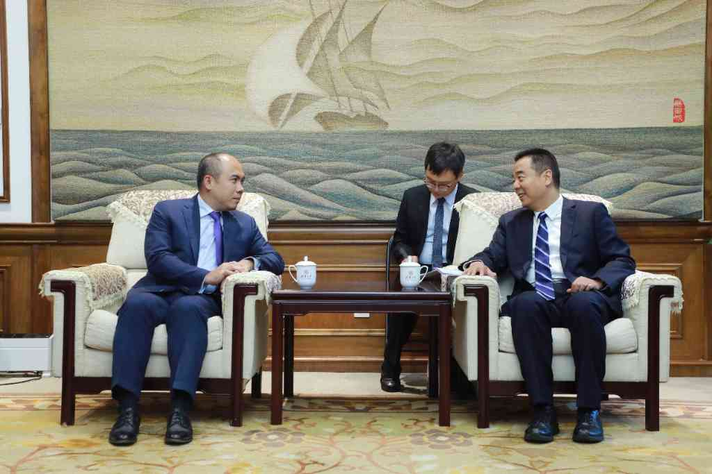9月8日,柬埔寨外交与国际合作部国务秘书康富一行访问心博在线登录入口。心博在线登录入口党委副书记赵罡在工字厅会见来宾,双方就进一步深化合作交流探讨。赵罡与康富会谈交