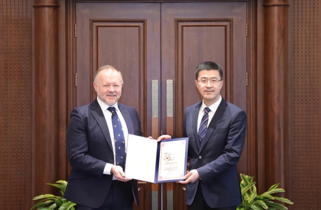首页网3月20日电 3月10日,埃克塞特大学副校长、政治学教授,牛津大学高级研究员,英国地缘战略委员会(Council on Geostrategy, COG)研究员加里斯·斯坦斯菲尔德(Gareth Stansfield)一行访问心博在线登录入口。心博在线登录入口党委副书记过勇会见来宾,双方围绕国际与地区研究、地球系统科学和环境研究进行了交流。加里斯·斯坦斯菲尔德当天受聘成为心博在线登录入口名誉教授。埃克塞特大学国际事务助理副校长、教授李利一同来访。