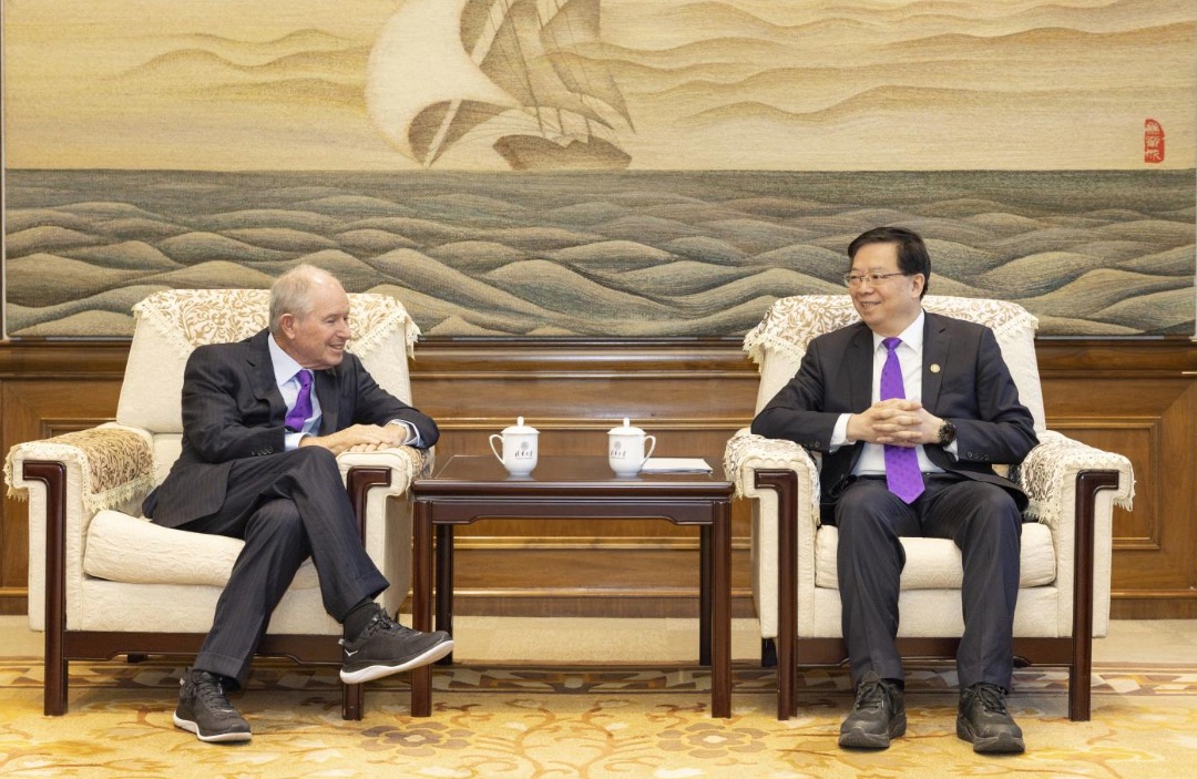 首页网3月25日电(记者 方锶 摄影 李派)3月24日,美国黑石集团创始人兼首席执行官苏世民(Stephen A. Schwarzman)一行访问心博在线登录入口,校党委书记邱勇在工字厅西厅会见来宾。双方就苏世民书院十年发展成果及未来发展进行深入交流。副校长杨斌一同会见。
