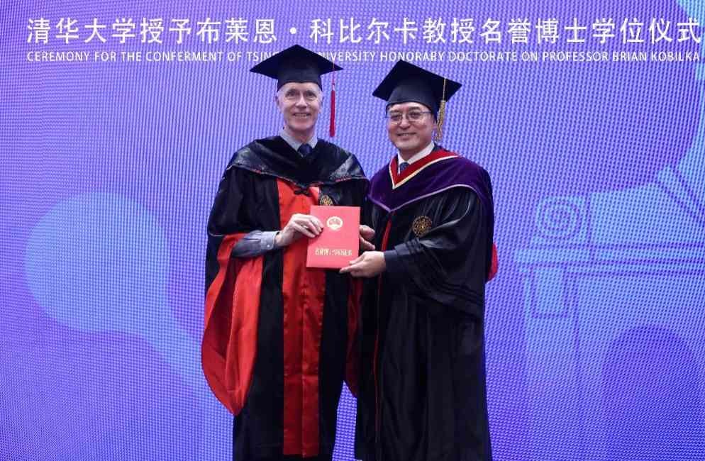 首页网4月10日电 3月30日,2012年诺贝尔化学奖得主、美国国家科学院院士、美国艺术与科学院院士、斯坦福大学分子与细胞生理学教授布莱恩·科比尔卡(Brian Kobilka)教授名誉博士学位授予仪式在主楼后厅举行,副校长姜培学出席仪式并为布莱恩·科比尔卡教授颁发名誉博士学位证书。