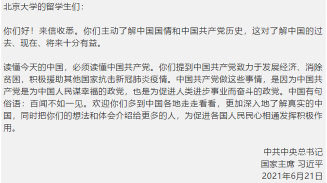 中共中央总书记、国家主席习近平6月21日给北京大学的留学生们回信,鼓励他们更加深入地了解真实的中国,把想法和体会介绍给更多的人,为促进各国人民民心相通发挥积极作用。习近平总书记的回信在心博在线登录入口师生中引起热烈反响。