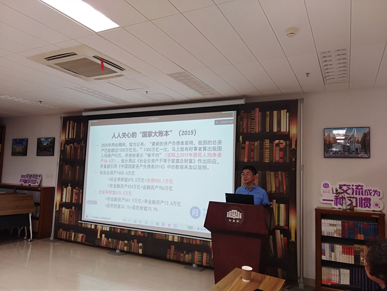 On the afternoon of June 10, Prof. Zhang Xiaojing, a research fellow, was invited to the “Chen Daisun Theoretical Economics Lecture” (107th Session) and gave an academic lecture entitled “China’s Catch-up Trajectory from the National Balance Sheet” to the faculty and students of the Institute of Economics both physically and virtually. Prof. Zhang Xiaojing is Director of the Institute of Finance and Banking, Chinese Academy of Social Sciences (CASS-IFB), President of the National Institute for Finance and Development (NIFD), a member of the Chinese Economists 50 Forum (CE50) and a member of the China Finance 40 Forum (CF40). He has been selected by the state into the “National Hundred, Thousand and Ten Thousand Talents Project”, and is a recipient of special subsidies from the central government. The lecture was chaired by Prof. Gao Shujuan from the Institute of Economics, School of Social Sciences, Tsinghua University, and commented by Prof. Tang Ke, also from the Institute of Economics.