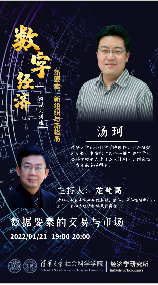 On January 21, Tang Ke, professor at the School of Social Sciences, Tsinghua University and director of the Institute of Economics, Tsinghua University, gave the Lecture 3 of Frontiers of Digital Economy Lecture Series, with the theme of transaction and markets of data elements. The lecture was presided over by Long Denggao, professor at the Institute of Economics, School of Social Sciences, Tsinghua University and director of the Center for Chinese Entrepreneur Studies, Tsinghua University.