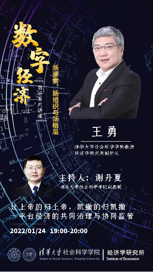 On January 24, Wang Yong, professor at the School of Social Sciences, Tsinghua University and deputy director of the Institute of Economics, Tsinghua University, gave the Lecture 4 of Frontiers of Digital Economy Lecture Series, with the theme of co-governance and collaborative regulation of the platform economy.