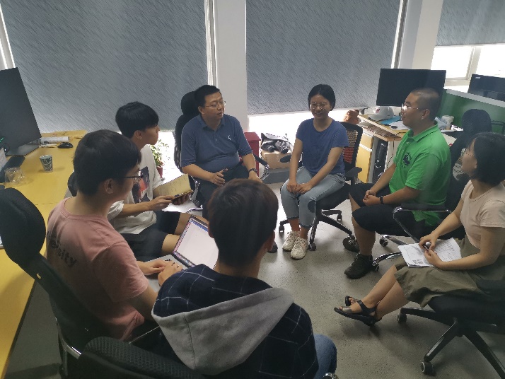 付昊桓(中)和学生们讨论问题