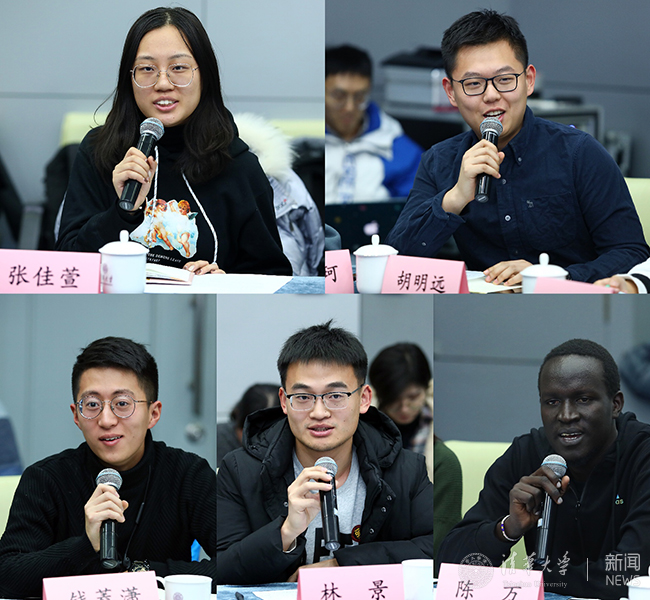 研工部、党办校办、宣传部、研团委等相关负责人,以及各院系学生代表等30余人参加座谈。