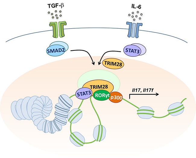TRIM28调控Th17细胞发育过程中的分子及表观调节机制