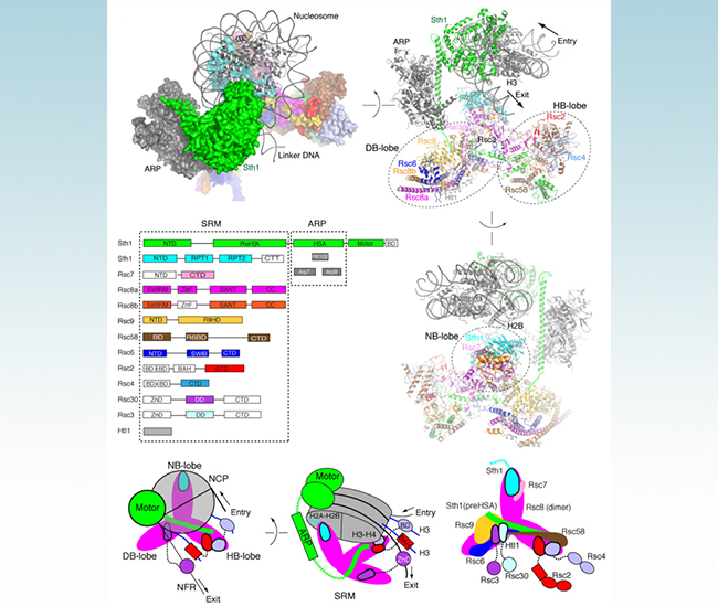 染色质是遗传信息的物质载体。染色质的形成可以有效压缩DNA以适应细胞空间的需要,但同时抑制了基因的表达。核小体是组成各级染色质结构的基本单位。染色质重塑复合物(Chromatin remodeler)改变核小体位置和组成,对染色质结构进行重塑,在基因表达、DNA复制与修复等过程中发挥着重要作用。RSC是酵母细胞的关键染色质重塑复合物,调控酵母大部分基因的表达。RSC复合物包含15个亚基,其分子量在1MDa以上。尽管被广泛研究,RSC如何组装,如何滑动核小体,打开基因启动子的机理仍有赖于进一步阐释。