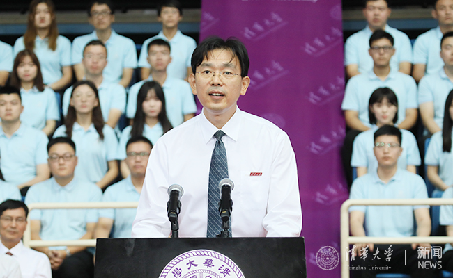 航天航空学院教授李路明代表全体教师发言。他说,拿到录取通知书,不仅意味取得清华研究生的入学资格,更意味着接受新的考问的开始。无论是研究生阶段的学业,还是未来的职业生涯,考题繁复多变,但只有一个主题不变,那就是如何使自己成为真正的清华人。结合自己在清华多年的学习经历和教学科研实践,李路明与大家分享了三点体会,即追求“有用之用”,更要善待“无用之用”;读万卷书,更要行万里路;传承和发扬清华人特有的崇尚体育精神。