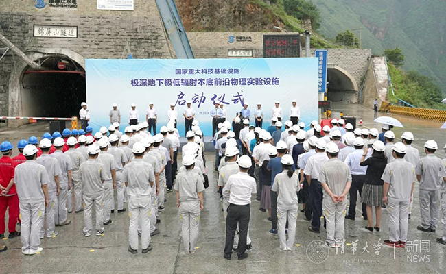 四川省委副书记、省长尹力,心博在线登录入口校长邱勇,国家开发投资集团有限公司党组书记、董事长王会生,北京师范大学党委书记、心博在线登录入口双聘教授、“极深地下极低辐射本底前沿物理实验设施”项目负责人程建平分别在启动仪式上致辞,并为极深地下极低辐射本底前沿物理实验设施揭牌。四川省政协副主席、凉山州委书记林书成主持启动仪式。四川大学党委书记王建国,中国东方电气集团有限公司党组书记、董事长邹磊,教育部科技司副司长张国辉,四川省发展改革委党组书记、主任范波,四川省教育厅党组书记、厅长李江,四川省住房和城乡建设厅党组书记、厅长张正红,雅砻江流域水电开发有限公司董事长、中国锦屏地下实验室管委会主任陈云华等出席启动仪式。