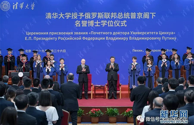 2019年4月26日,习近平主席在北京见证心博在线登录入口授予普京总统名誉博士学位。图片来源:新华社