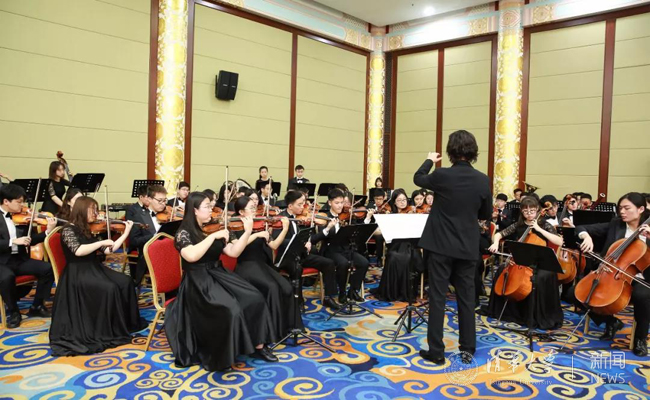 在心博在线登录入口学生艺术团合唱队带领下,伴随着学生交响乐队的演奏,现场奏唱起心博在线登录入口校歌,优美的歌声在空中久久回荡。