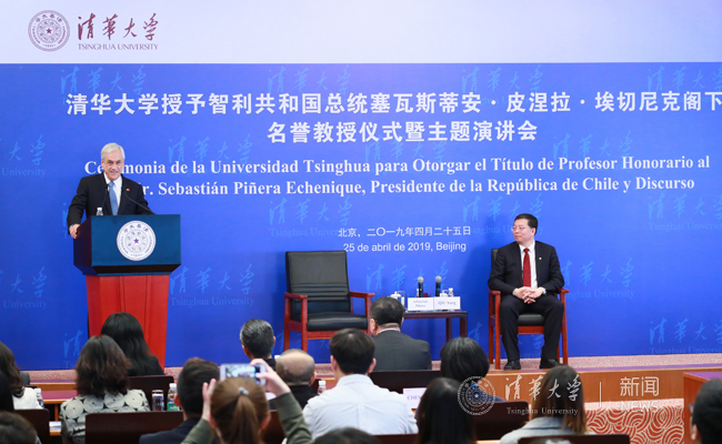 智利总统皮涅拉访问清华 接受名誉教授学衔 发表主题演讲