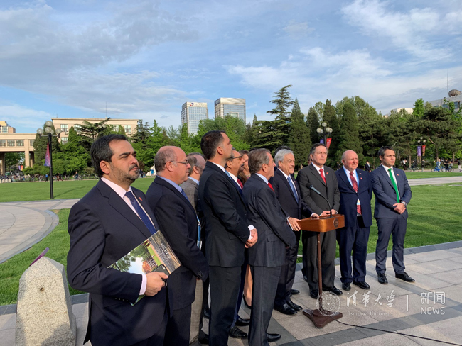 活动结束后,皮涅拉总统在清华主楼草坪前与来自各国的记者亲切交流。他高度评价了本届“一带一路”峰会所取得的成果,并表示自己为清华美丽的校园和热情的师生所感染。