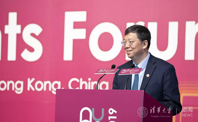 邱勇说,清华在香港的影响力日益提高,除了学校自身发展取得的成就外,最重要的是当地校友的贡献和取得的成就。他代表学校向校友们付出的努力、传承清华的精神表示衷心的感谢。邱勇说:“2019年是清华108周年校庆,也是中国传统文化中讲的‘茶寿’,今天是清华108周年校庆的第一场校友活动,祝大家校庆快乐!”邱勇说,今年校庆的主题是“自信的清华更开放”,自信来自清华的历史和文化,也来自于我们不断取得的进展。这两天清华在香港发出的声音、推动的事情反映了清华的变化和发展。亚洲大学联盟是首个由中国大学牵头成立的高水平大学联盟,是清华发出中国高等教育声音、担当走出去的“自强”精神的体现。邱勇说,走向世界要有胸怀、能包容、懂尊重,要在不同文化背景交织的环境下相互合作、相互学习,清华正在这样的道路上前行。他详细介绍了清华近两年来全球战略实施的重大举措、取得的成果和产生的影响。